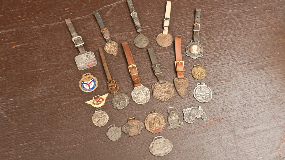Lot consists of a group of 20 watch fobs with automotive, motorcycle, political, and tractor equipment subjects.