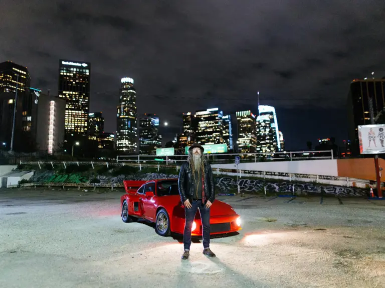 So this particular car—maybe five or six years ago I started thinking it's really time to get a second slant-nose. I looked at factory original slant-noses, I looked at backyard build slant-noses, modified slant-noses, and nothing ever really ticked the box. And as fate would have it, when I'd sort of stopped looking, ironically, I got a call from Rob Dietz over at WOB Cars and he said he had a customer who was selling one. I went out there to look at it and bought it. It was the cheapest one I'd looked at. I drove it home and didn't really think too much of it. Drove it a couple of times. We ended up getting that iconic shot of Willow jumping out of the side of it in 2021 that photographer Daniel Malikyar took [as part of a 2021 photo series displayed at Santo Gallery].